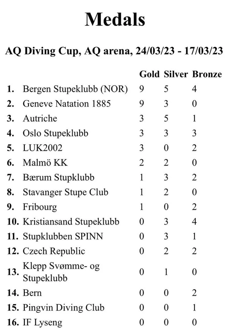 AQ Diving Cup à Kristiansand du 24-26 mars 2023