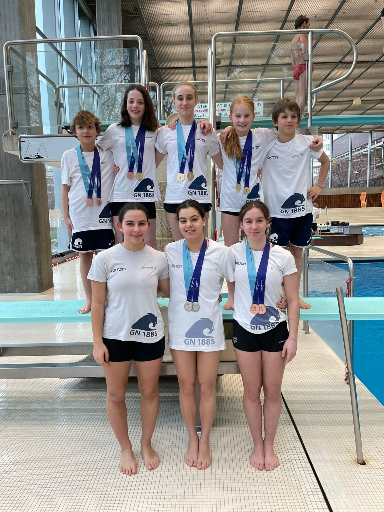Le Genève Natation 1885 fini premier club des Championnats Suisses Juniors d’Hiver de plongeon avec 12 médailles (5 en or).